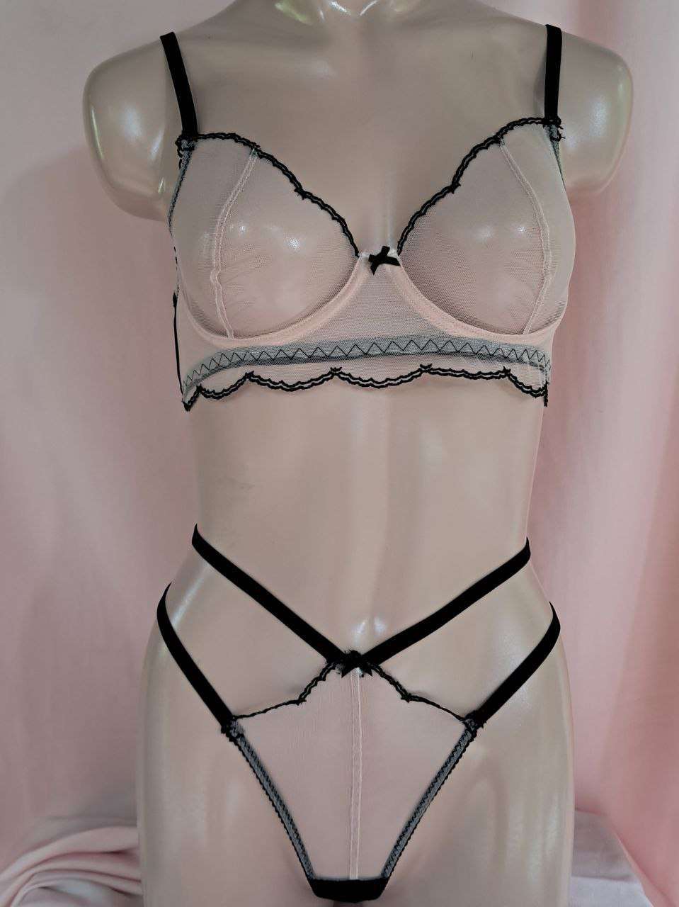 • pink trasparent net lace in front