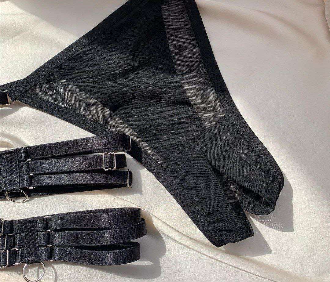 Made of lightweight stretch mesh, this one-of-a-kind crotchless undie sits high on the waist and is made of lightweight stretch mesh.