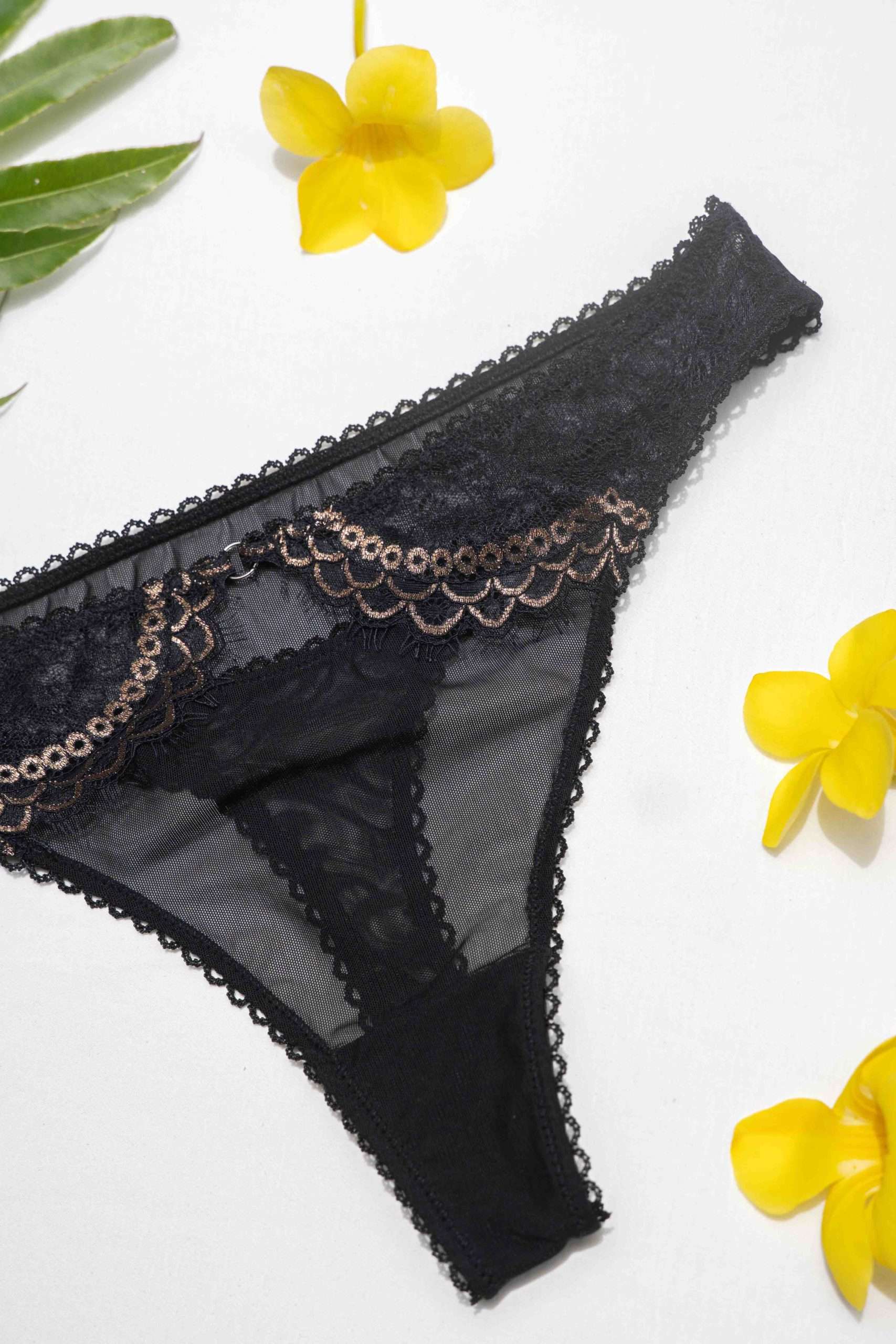 • Lace  with golden inserts  and soft mesh
